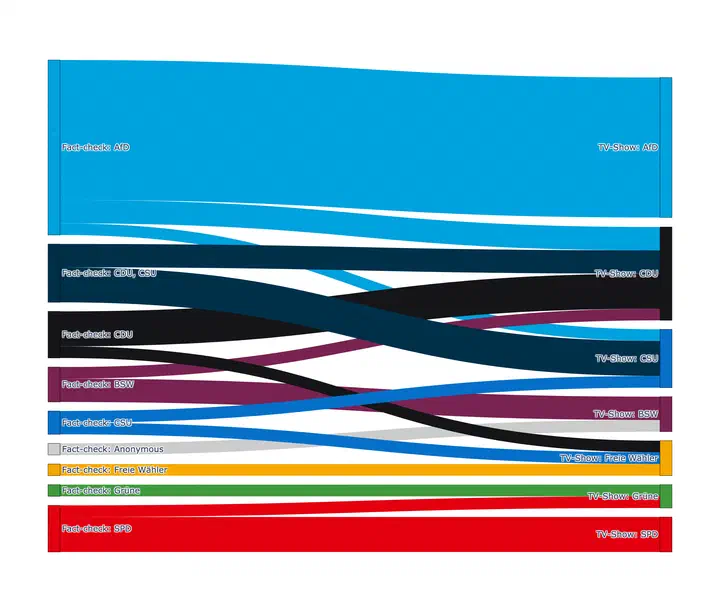 Such claims are most often made by politicians. While they are sometimes challenged by moderators or other guests, in many cases they remain unaddressed. The misinformation ranges from narratives about migration “pull factors” to climate policy. However, the study finds no evidence that viral online misinformation is being transmitted on television. This suggests that although gatekeeping frequently fails, public broadcasting does not serve as an amplifier either. Instead, two distinct forms emerge: online misinformation, which is often outlandish and unrelated to current public discourse, and misinformation tied to high-profile political events that circulates both online and in traditional media.
