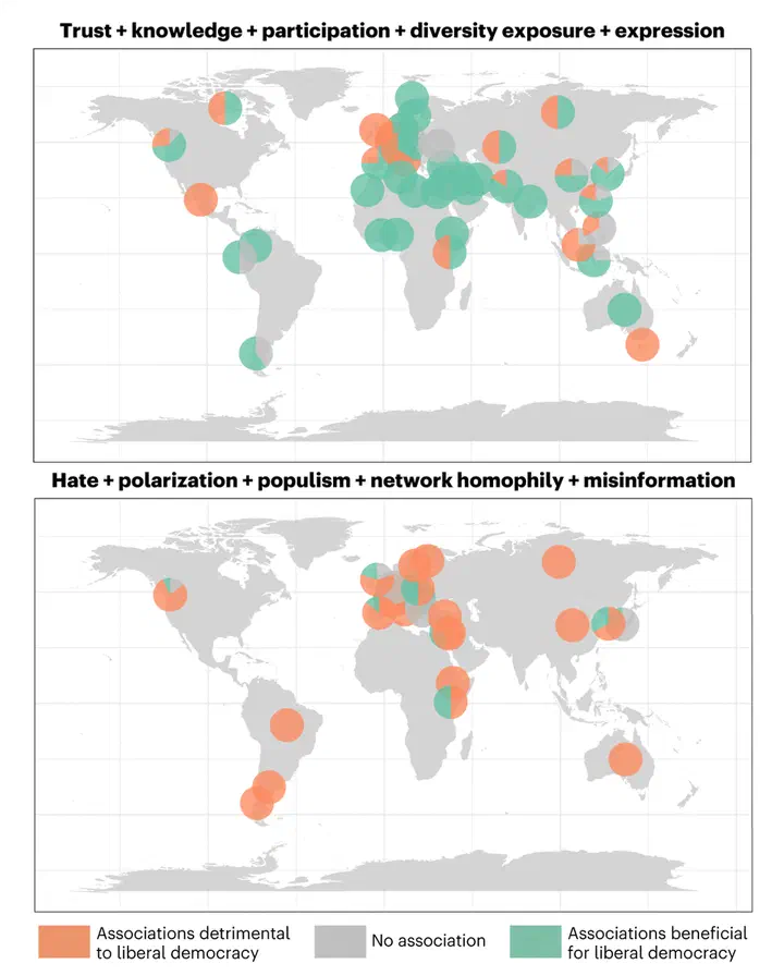 Digital media has changed the way public spheres function around the world, specifically in the information environment of the internet. Moving from mostly one-to-many communication to a many-to-many system has increased its complexity. In addition, big platforms are curating information flows algorithmically and optimize them for engagement. Our goal is to better understand how those transitions are affecting democracies globally and political behaviour in particular.
